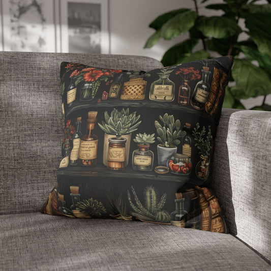 Botanical Apothecary Shelf Pillowcase, Dark Academia Plant & Potion Cushion, Vintage Witchcore Home Decor
