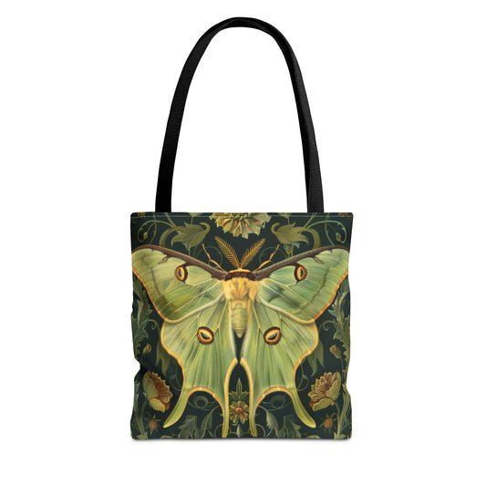 Woodland Luna Moth Tote Bag William Morris Inspired, Green Tote Bag, Eco-Friendly Carryall