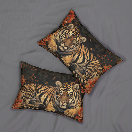 Art Deco Florals Black Leopard Lumbar Pillow, INSERT INCLUDED | Cottage-core Home Decor, Decorative Pillow, Accent Cushion