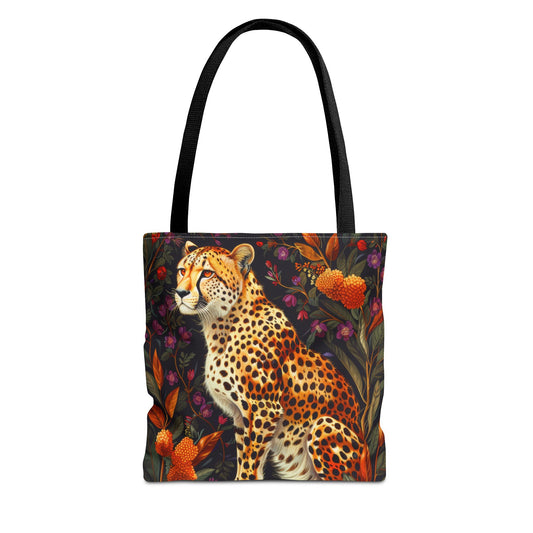 Botanical Cheetah Tote Bag, William Morris Inspired, Wildlife Tote Bag, Cottage-core Tote Bag, Eco-Friendly Carryall