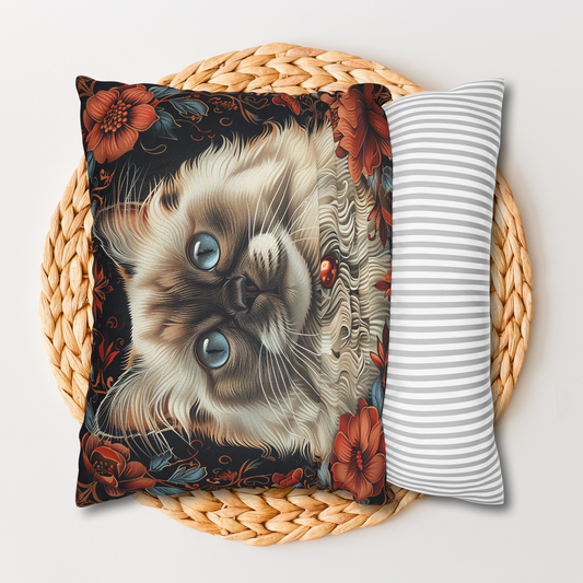 William Morris Inspired Ragdoll Catt Pillow, Decorative Cat Cushion, Spun Polyester Square Pillow, Gift for Cat lovers