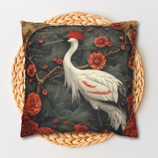 Chinese Art Style Egret Throw Pillow | Art Deco Pillow Cushion Gift for Her INSERT INCLUDED