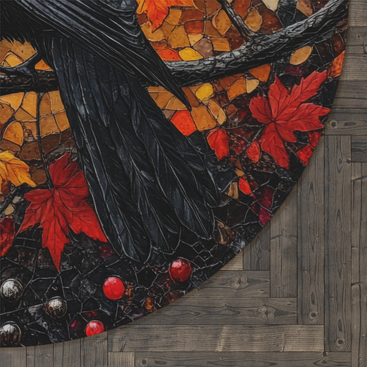 Mystical Raven Autumn Art Mosaic Round Area Rug | Elegant Fall-Inspired Living Room Home Decor Rug