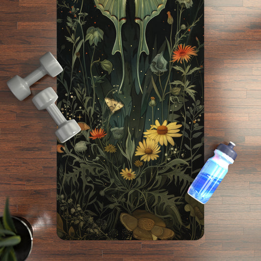 Moon Night Luna Moth Print Rubber Yoga Mat, William Morris Inspired, Pilates Mat, Eco-Friendly Workout Mat, Non-Slip Exercise Mat, Yoga