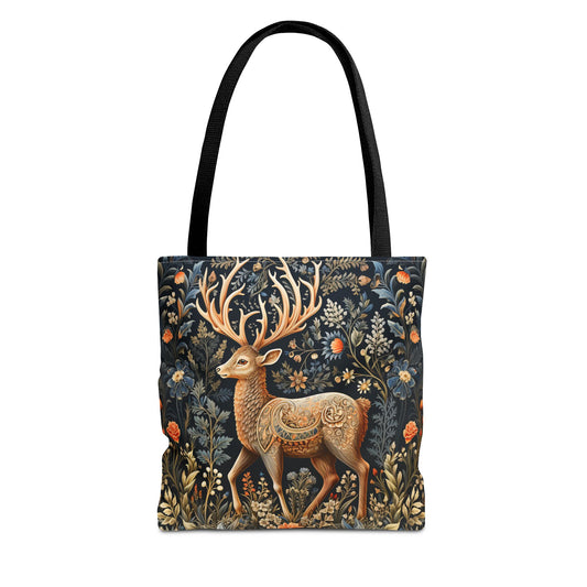 William Morris Inspired Victorian Deer Tote Bag | Art Nouveau Deer Shopping Bag | Reindeer Cottage-core AOP Tote Bag, Eco-Friendly Carryall