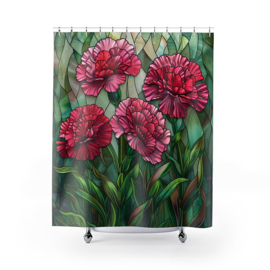 Faux Stained Glass Carnation Flowers Polyester Shower Curtain