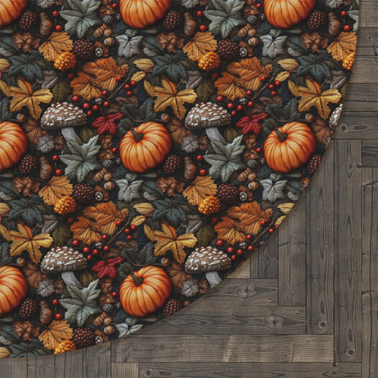 Fall Leaves Pumpkin Embroidery Round Rug, Autumn Harvest Decor, Thanksgiving Table Centerpiece, Holiday Season Floor Mat, Cozy Home Accent,