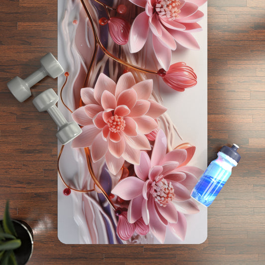 3D Pink Gold Water Lily Rubber Yoga Mat, Pilates Mat, Eco-Friendly Workout Mat, Non-Slip Exercise Mat, Yoga