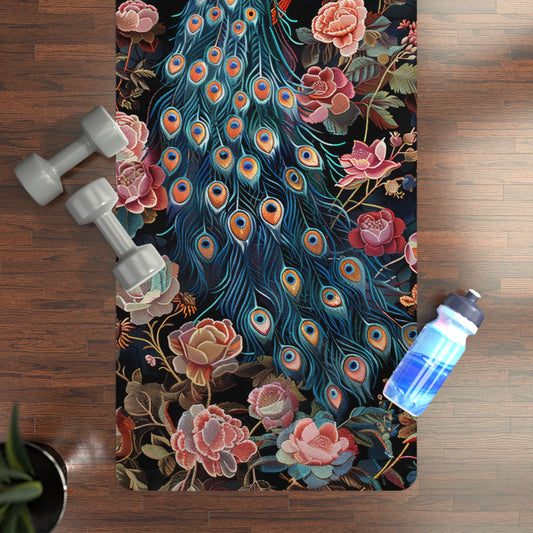 Peacock Print Rubber Yoga Mat, William Morris Inspired, Art Deco Design, Pilates Mat, Eco-Friendly Workout Mat, Non-Slip Exercise Mat, Yoga