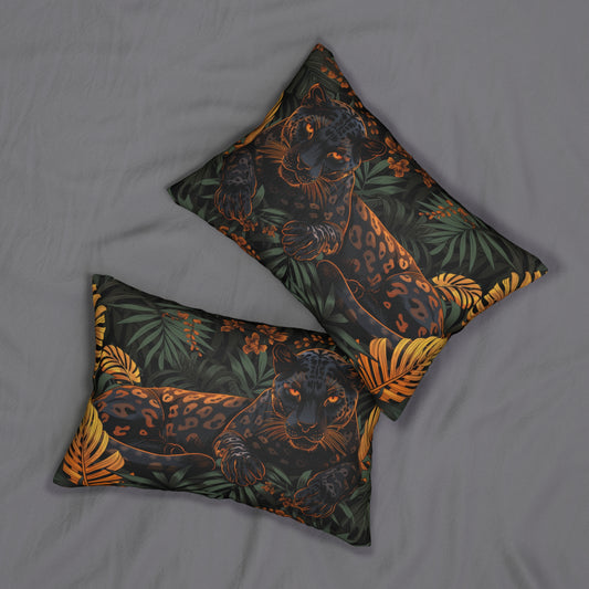 William Morris Inspired Floral Black Leopard Lumbar Pillow, INSERT INCLUDED | Cottage-core Home Decor, Decorative Pillow, Accent Cushion,