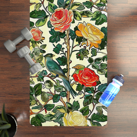 William Morris Inspired Birds and Roses Pattern Print Yoga Mats, Pilates Mat, Eco-Friendly Workout Mat, Non-Slip Exercise Mat, Yoga