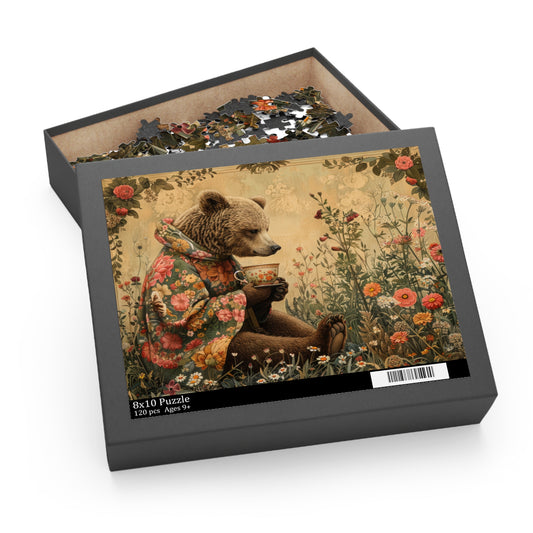 Tea Time Bear Wildflower in William Morris Style (120, 252, 500-Piece) Adult Jigsaw Puzzle, Gift Him Her