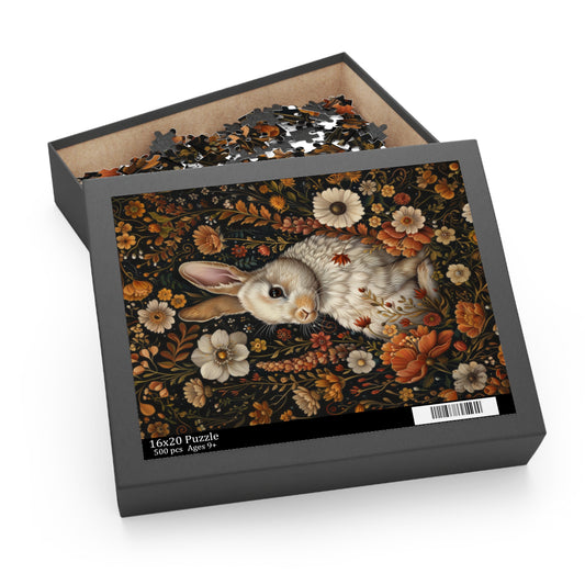 Fall Autumn Rabbit | William Morris Inspired Cottagecore Puzzle Box (120, 252, 500-piece) Family Jigsaw Puzzle, Puzzle Box Gift