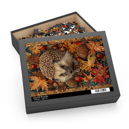 Hedgehog Fall Leaves William Morris Inspired Puzzle Box (120, 252, 500-Piece) Family Jigsaw Puzzle, Puzzle Box Gift