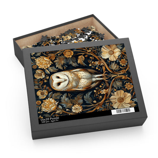 Vintage Barn Owl | William Morris Inspired | Cottage-core Puzzle Box (120, 252, 500-Piece) Family Jigsaw Puzzle, Puzzle Box Gift