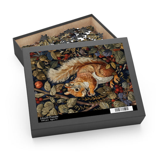William Morris Inspired Forest Squirrel Jigsaw Puzzle Box | Cottage-core Art Nouveau Puzzle Box (120, 252, 500-Piece)