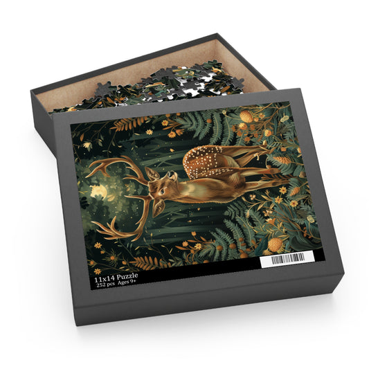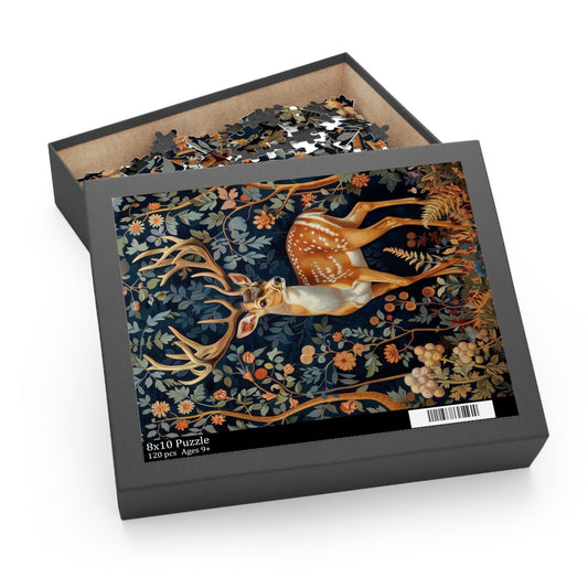 William Morris Inspired Forest Deer Jigsaw Puzzle Box | Cottage-core Art Nouveau Puzzle Box (120, 252, 500-Piece)