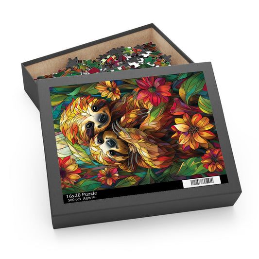 Faux Stained Glass Cuddling Sloth Puzzle Box (120, 252, 500-Piece) Family Jigsaw Puzzle, Puzzle Box Gift