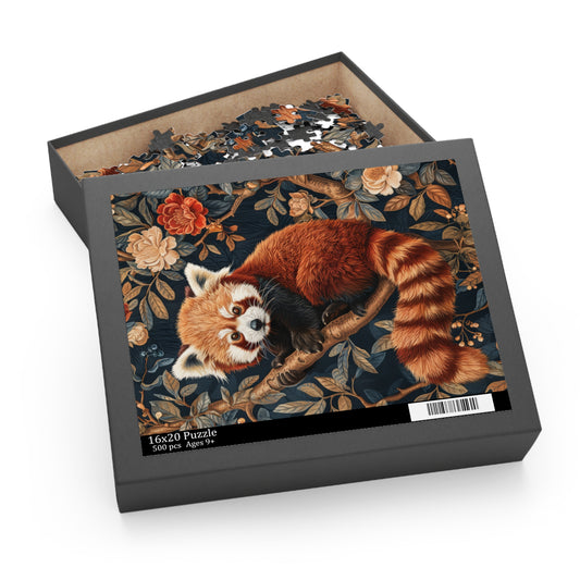 William Morris Inspired Forest Red Panda Jigsaw Puzzle Box | Cottage-core Art Nouveau Puzzle Box (120, 252, 500-Piece)