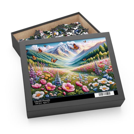 Field of Wildflowers and Butterflies Embroidered, Spring Scene Puzzle (120, 252, 500-Piece) Gift-Ready Box, Adult Jigsaw Puzzle