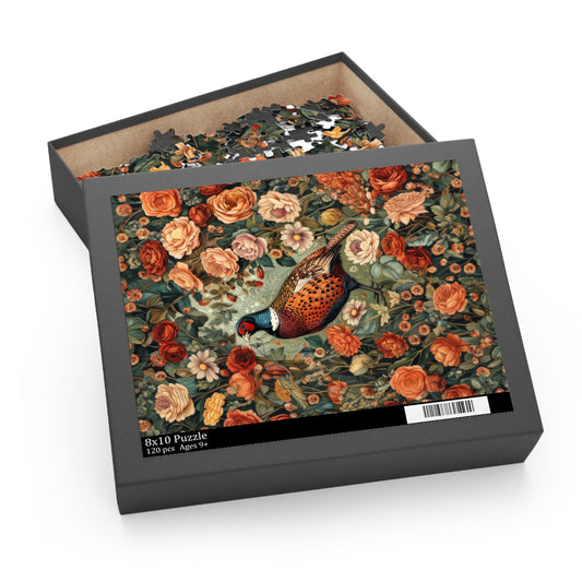 Pheasant Floral Garden | William Morris Inspired Jigsaw Puzzle Fall Gift Box | Cottage-core Art Deco Fall Puzzle Box (120, 252, 500-Piece)