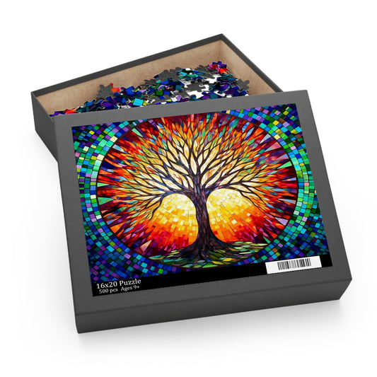 Colorful Tree of Life Mosaic Stained Glass Puzzle (120, 252, 500-Piece) Gift-Ready Box, Adult Jigsaw Puzzle
