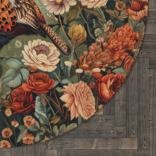 Pheasant Floral Garden, Art Deco Style Home Decor, Pheasant Round Area Rug, Living Room Fall Season Area Rug Decor