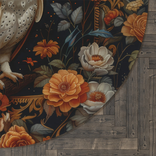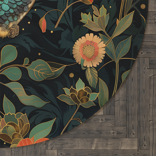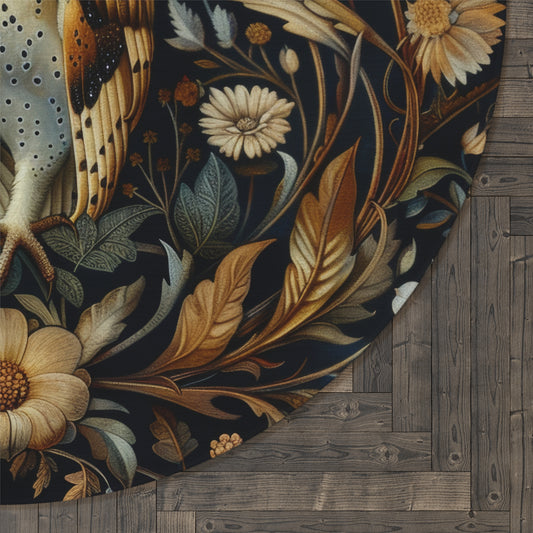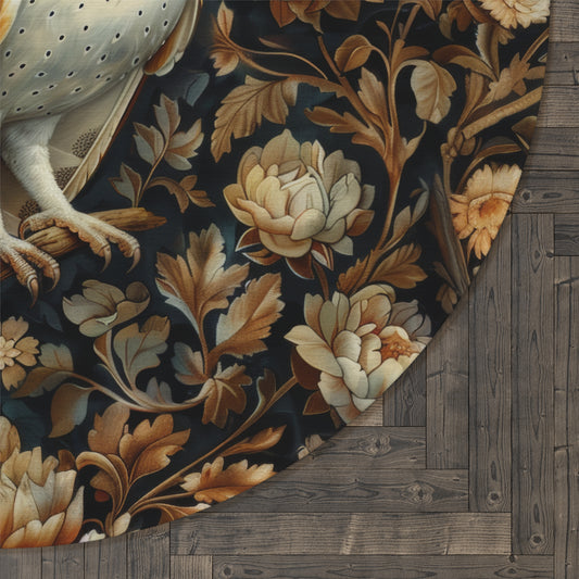Botanical Screech Owl Round Rug, William Morris Inspired Owl Home Decor, Owl Round Area Rug