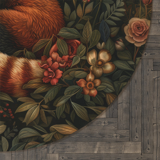 Forest Red PandaRound Area Rug | William Morris Inspired Cottagecore Decor, Housewarming Gift