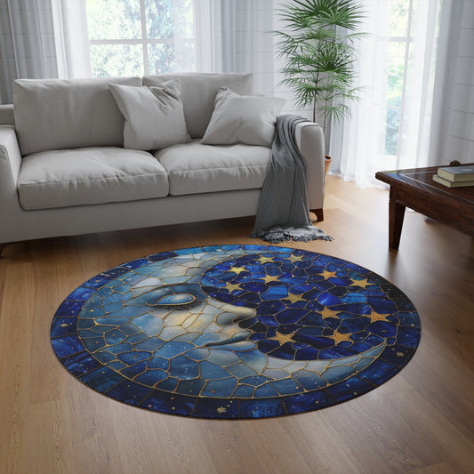 Ladies Moon And Stars Round Rug Home Decor, Living Room Floor Coverings, Boho Family Room
