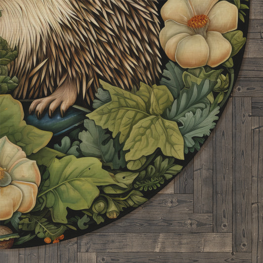 Botanical Hedgehog Round Area Rug | William Morris Inspired Cottage-core Decor, Housewarming Gift