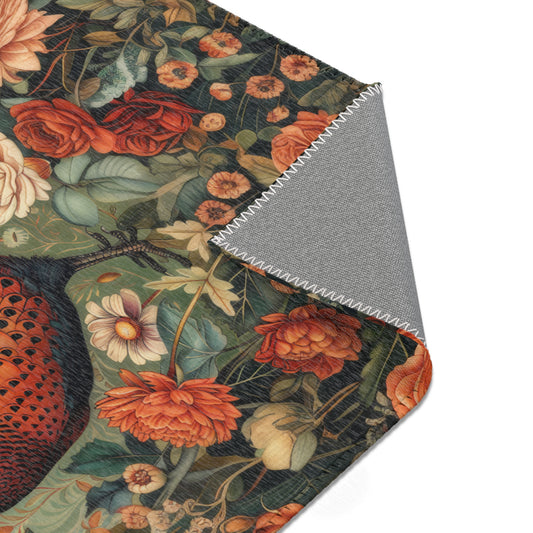 Pheasant Floral Garden, Art Deco Style Home Decor, Pheasant Rectangle Area Rug, Pheasant Living Room Fall Season Carpet Decor