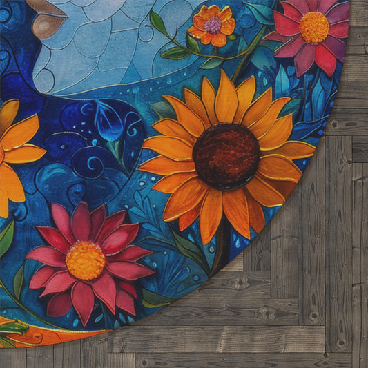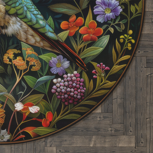 Hummingbird Wildflower Round Area Rug | William Morris Inspired Cottage-core Decor, Housewarming Gift