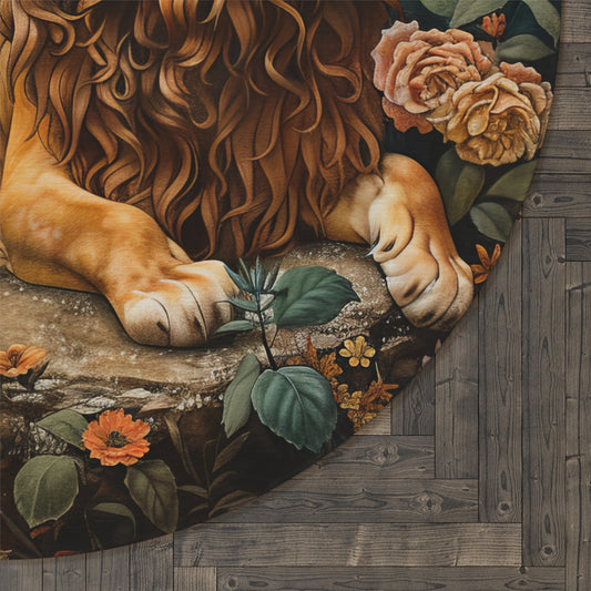 Forest Lion Round Area Rug | William Morris Inspired Cottage-core Decor, Housewarming Gift, Moody Woodland Round Carpet