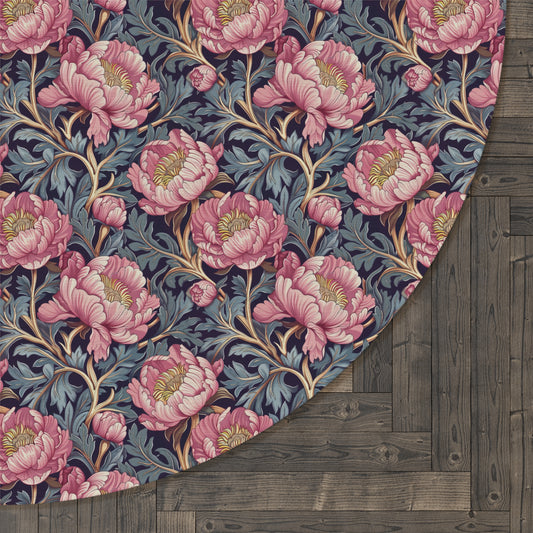 Peony Flower Pattern Round Area Rug | William Morris Inspired Cottage-core Decor