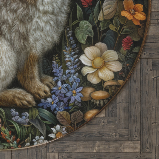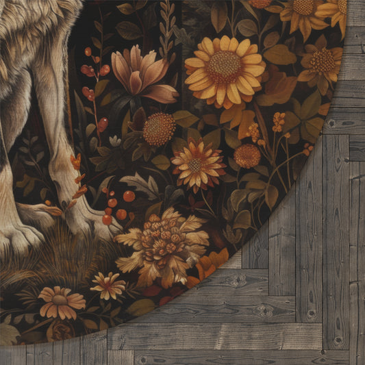 William Morris Inspired Forest Wolf Round Area Rug, Cottagecore Living Room Decor Rug, Housewarming Gift