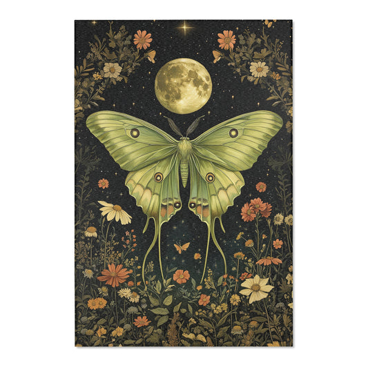 Luna Moth Full Moon Area Rug, Cottagecore Living Room Carpet, Floral Room Art Deco Rug, Housewarming Gift, Moms Gift