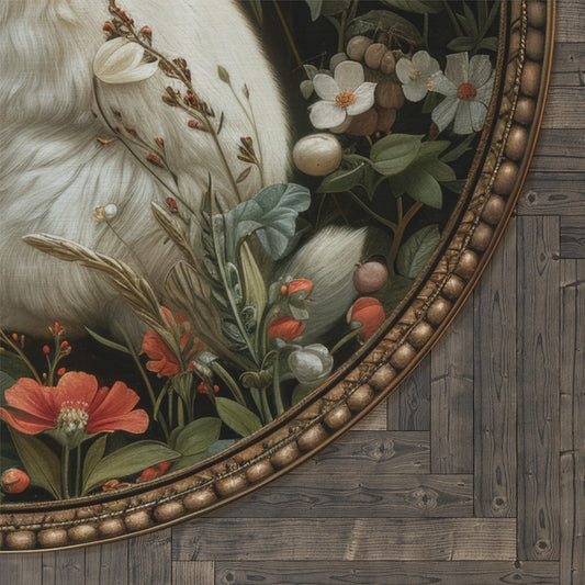 Vintage White Rabbit Round Area Rug | William Morris Inspired Cottage-core Decor, Housewarming Gift Round Carpet