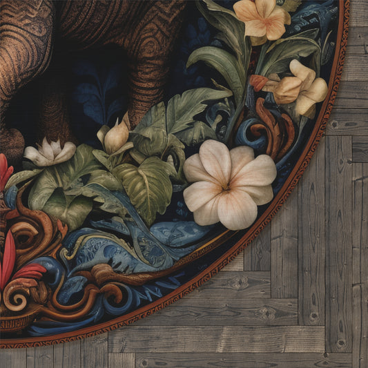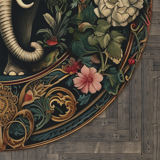 Botanical Wild Elephant Round Area Rug | William Morris Inspired Cottagecore Decor, Housewarming Gift