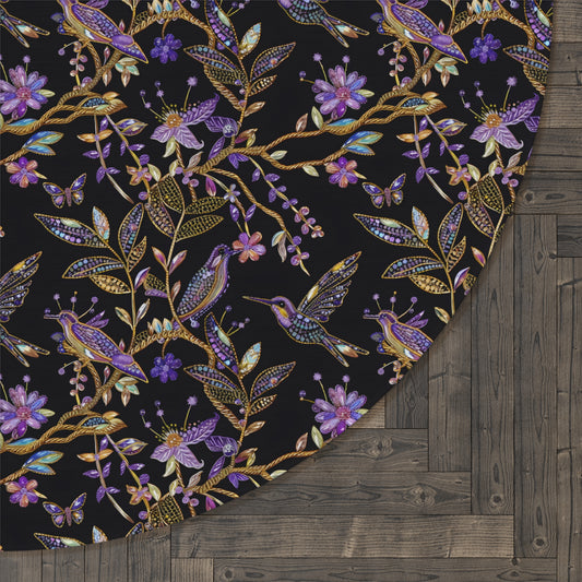 Purple Crystal Hummingbird Embroidery Seamless Pattern Round Area Rug