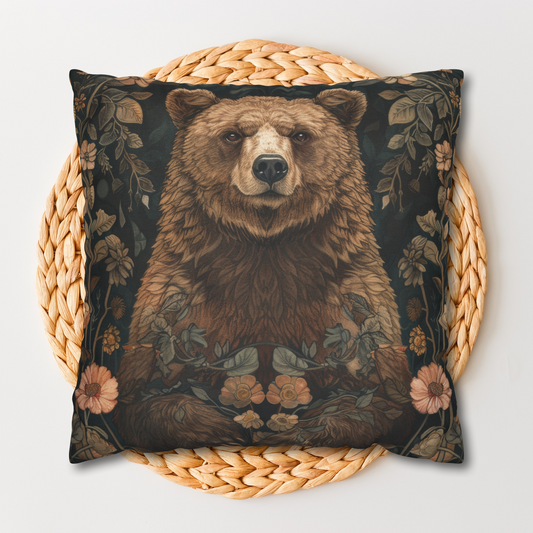 William Morris Inspired Forest Bear Decorative Pillow | Cottage-core Pillow