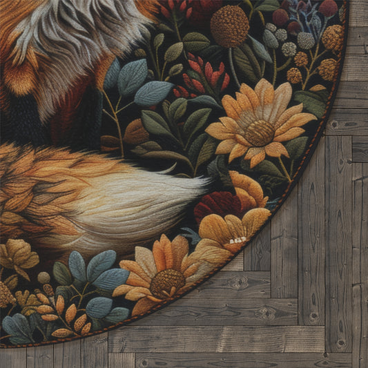 Vintage Fox Wildflower Round Area Rug | William Morris Inspired Cottage-core Decor, Housewarming Gift,