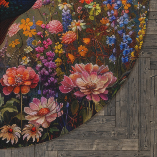 Peacock Wildflowers Round Area Rug | William Morris Inspired Cottage-core Decor, Housewarming Gift