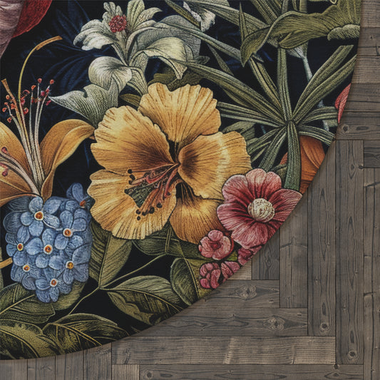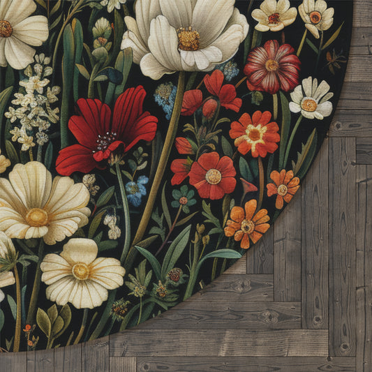 Vintage Wildflower Round Area Rug | William Morris Inspired Cottage-core Decor, Housewarming Gift