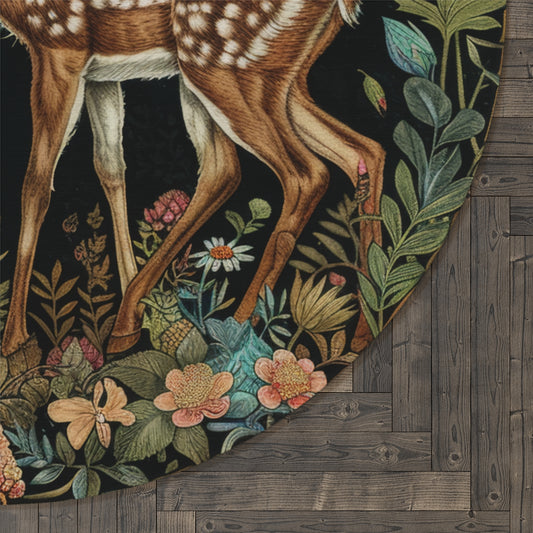 Vintage Forest Deer Round Area Rug | William Morris Inspired Cottage-core Decor, Housewarming Gift