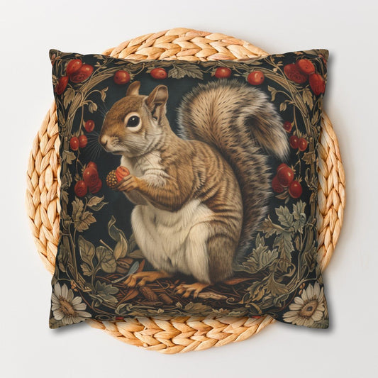Botanical Squirrel Throw Pillow | Decorative Pillow Morris Inspired | Cottage-core Pillow