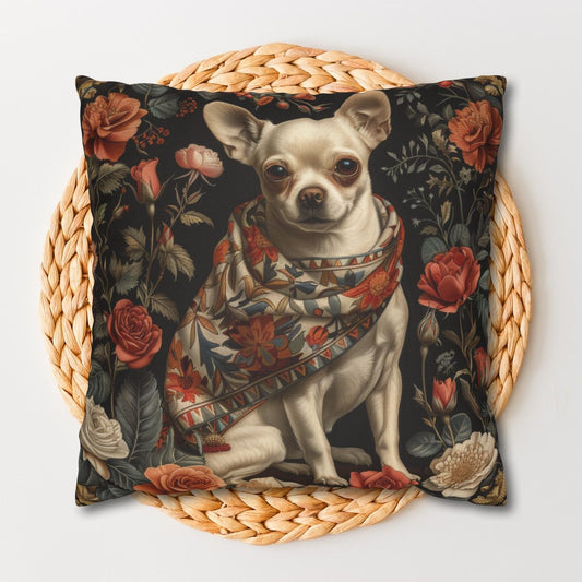 Chihuahua Roses Garden Decorative Pillow William Morris Inspired | Cottage-core Pillow