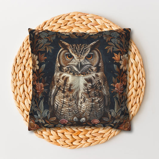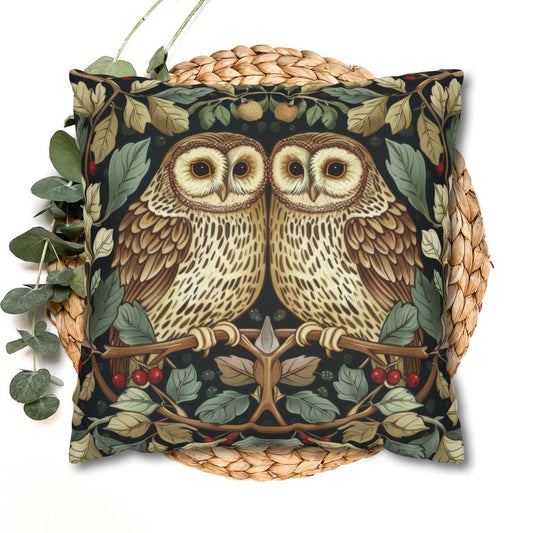 Forest Night Owls Decorative Pillow William Morris Inspired | Cottage-core Pillow