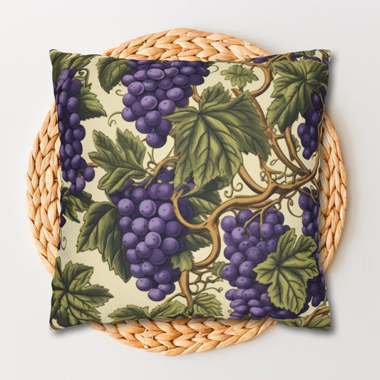 William Morris Inspired Grape Garden Decorative Pillow | Cottage-core Pillow