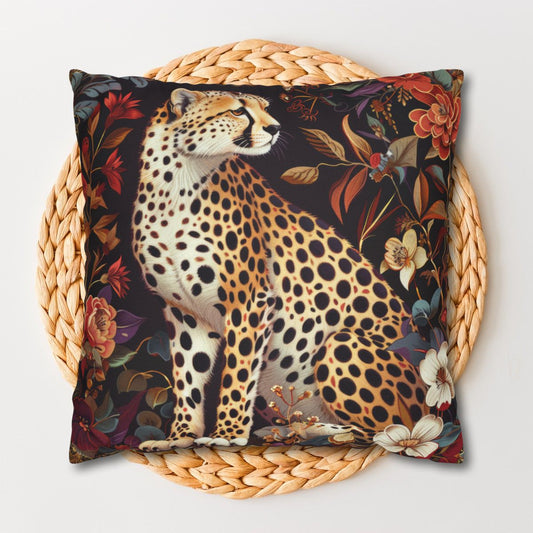 William Morris Inspired Botanical Cheetah Pillow | Cottage-core Pillow Design